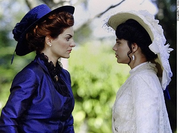 Foto de cena da novela Amor Eterno Amor da TV Globo: Em regressão, jornalista identifica ainda Amparo como irmã de Fernando em outra existência. Em outra vida, Dolores repreende Alice e ela ouve as…Leia mais